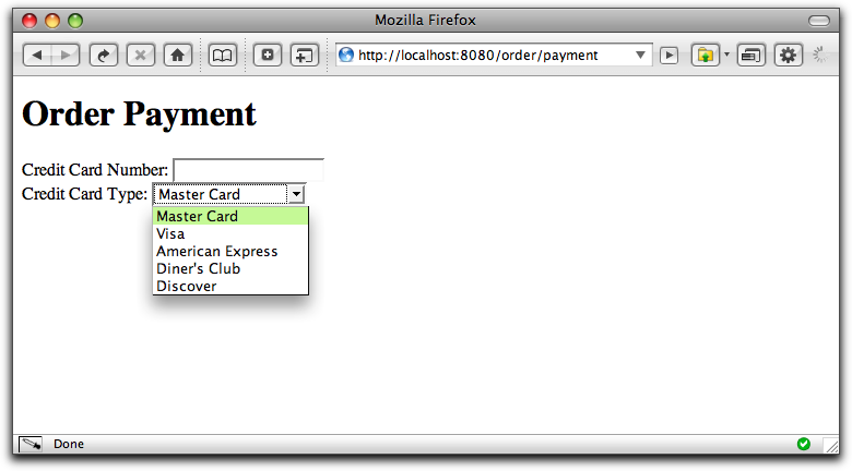 public enum CardType { MASTER_CARD, VISA, AMERICAN_EXPRESS, DINERS_CLUB, DISCOVER }Payment.tml (partial)